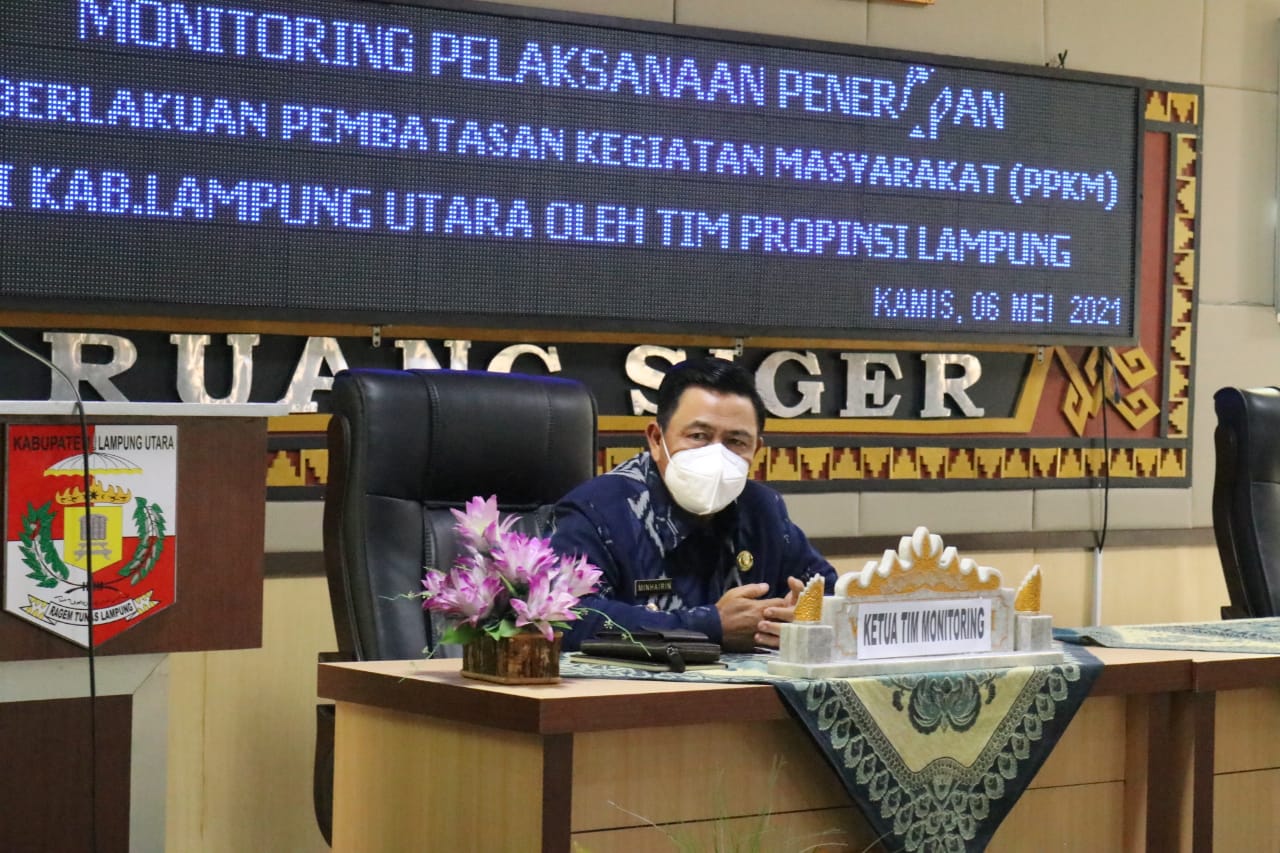 Lampung Utara, UNDERCOVER - Tim II Pemerintah Provinsi Lampung yang dipimpin oleh Asisten Administrasi Umum, Minhairin, melakukan monitoring Pelaksanaan Penerapan Pemberlakuan Pembatasan Kegiatan Masyarakat (PPKM) berbasis mikro di Kabupaten Lampung Utara.