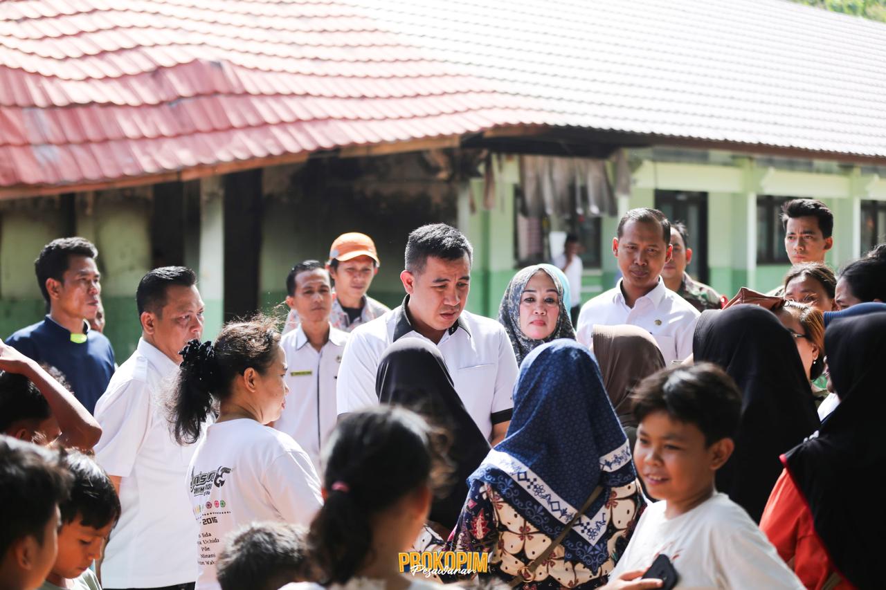 Pesawaran, 19 September 2024 - Bupati Pesawaran Dendi Ramadhona didampingi sejumlah perangkat daerah terkait, meninjau lokasi kebakaran yang terjadi di ruang kelas SMPN 6 Tegineneng yang berlokasi di Desa Kejadian Kecamatan Tegineneng pada Kamis, (19/9/2024).