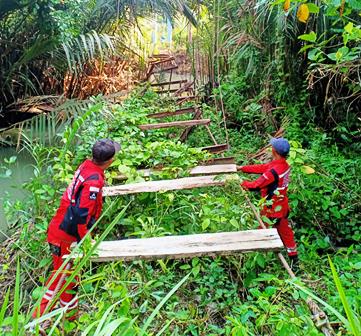 Gubernur Lampung, Rahmat Mirzani Djausal, menggandeng Tim Relawan Vertical Rescue Indonesia (VRI) Regional Lampung, Pemkab Tanggamus, organisasi pencinta alam, serta masyarakat untuk memperbaiki jembatan tersebut.